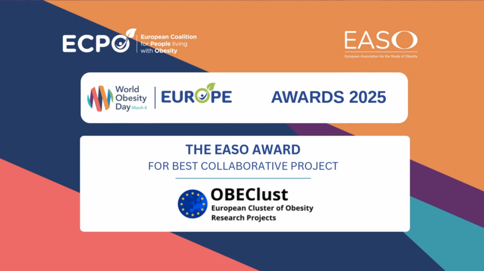 OBEClust has been awarded the EASO World Obesity Day Europe Award for Best Collaborative Project, recognising the value of coordinated European research efforts in obesity prevention and management.