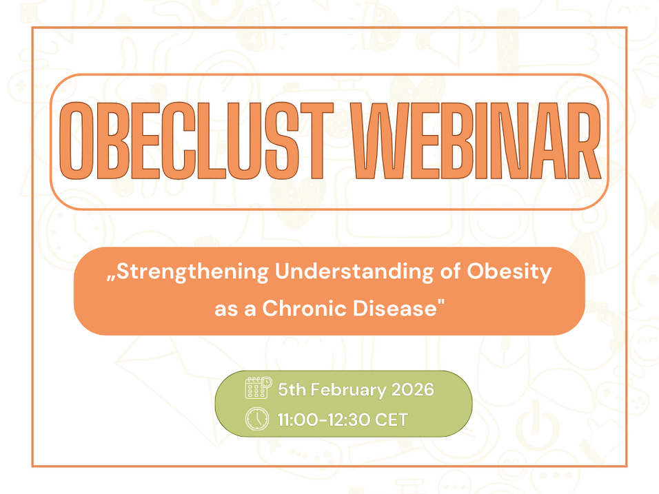On 5 February 2026, the OBEClust network will host the webinar “Strengthening Understanding of Obesity as a Chronic Disease”, taking place from 11:00 to 12:30 CET.